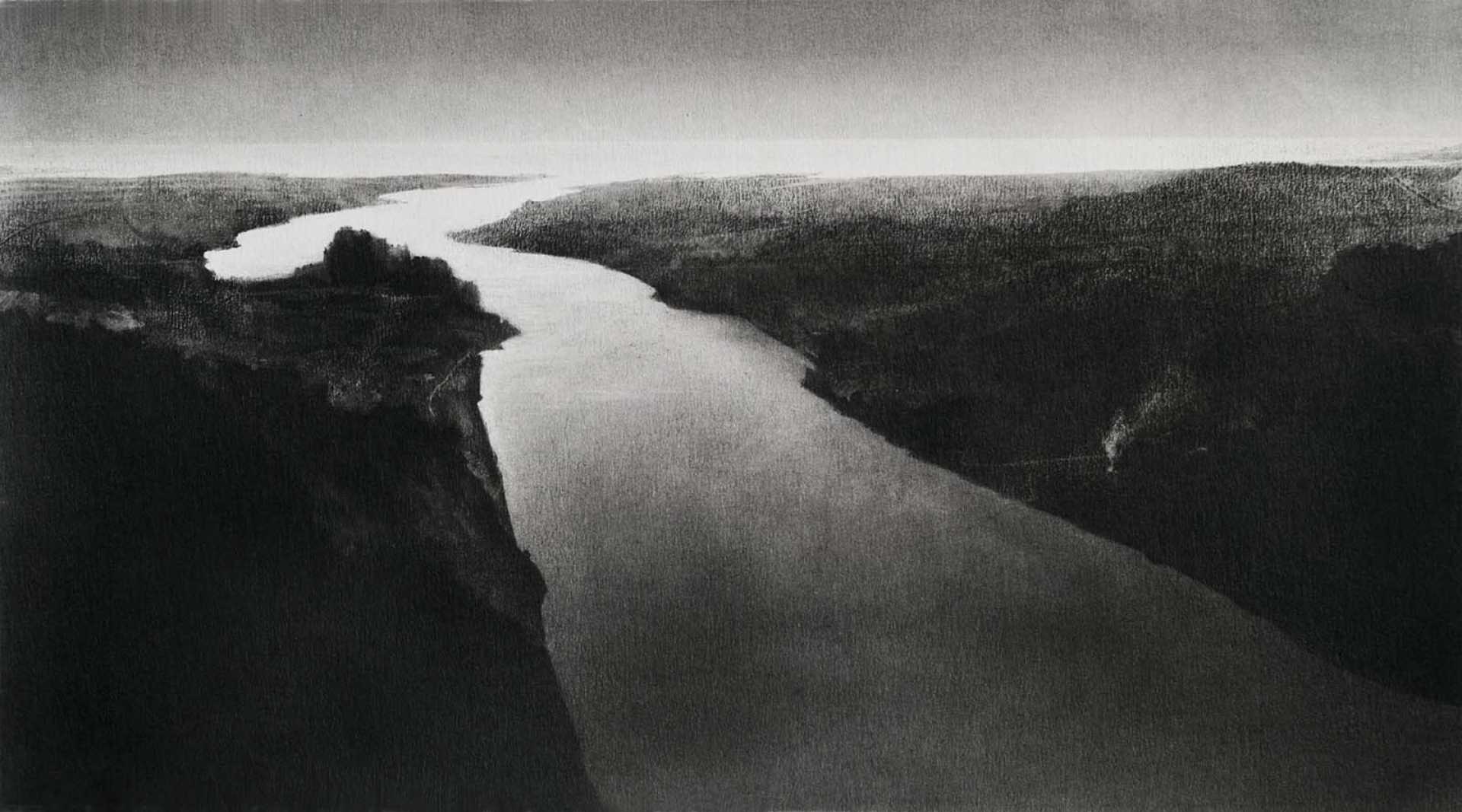 Finalmente, la geografía (disciplina difícil de desligar de la historia) es una eterna compañera que, de alguna manera, me ata a la tierra, me radica en ella. Inicié estudios académicos de estas dos disciplinas tan hermanadas que han continuado hasta hoy con innumerables lecturas e investigaciones, sobre todo circunscritas a la península ibérica. En cuanto a la geografía se refiere, no resulta extraño que me defina rotundamente como paisajista: es la geografía, y son los accidentes geográficos (físicos y humanos) los que me inspiraron en su día en mi etapa más descriptiva al óleo, y los que me motivan en la actualidad en las series de dibujos evocadores que llevo acometiendo en los últimos años.